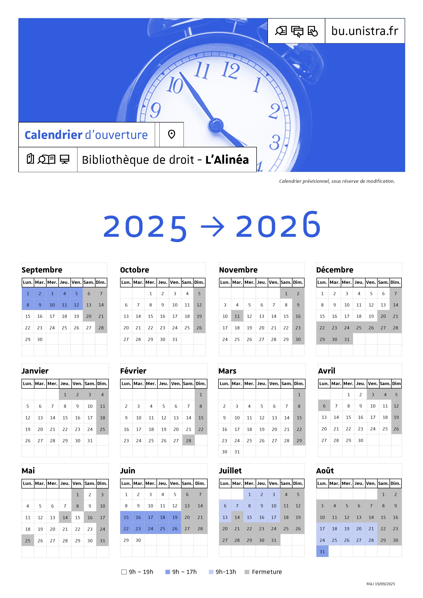 La bibliothèque de droit - L’Alinéa est une bibliothèque couvrant toutes les disciplines du droit dont le droit pénal, le droit civil, le droit des affaires, le droit du travail, le droit européen et international. Elle offre de nombreuses places de travail, des horaires d’ouverture élargis et divers services documentaires. Elle est entièrement accessible aux personnes à mobilité réduite et s’attache à offrir un accueil de qualité à tous les publics.