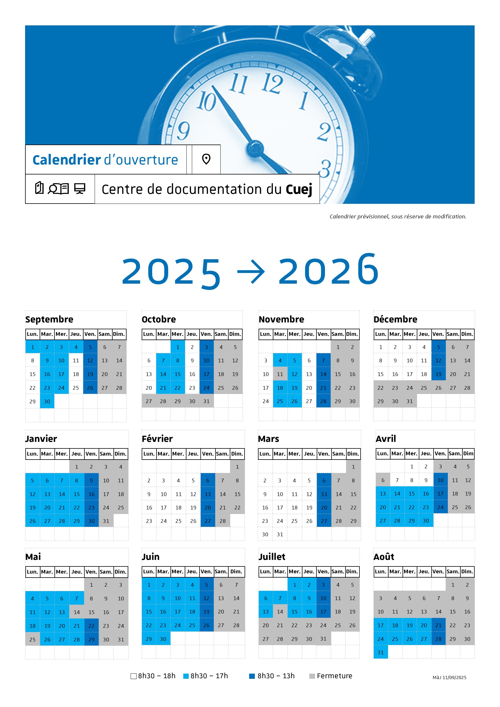 Le Centre de Documentation du CUEJ propose l'essentiel de la presse nationale et régionale, des magazines d'information générale et les revues scientifiques spécialisées dans le journalisme, les médias et la communication. Accès restreint au 2ème étage : si besoin, merci de téléphoner au 03 68 85 80 38.