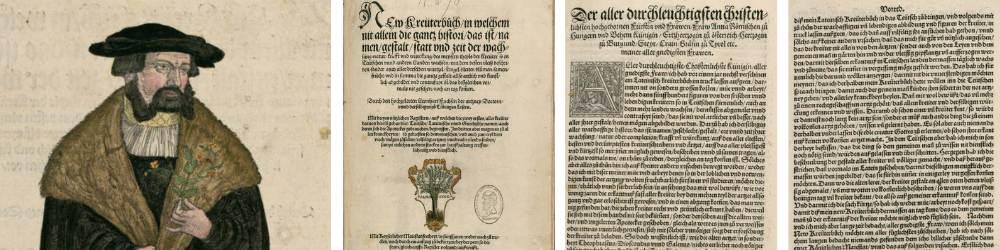 Portrait de l’auteur à 42 ans au moment de la publication du Kreüterbuch. On note que les tenues de randonnée ont bien changé depuis le 16e siècle…