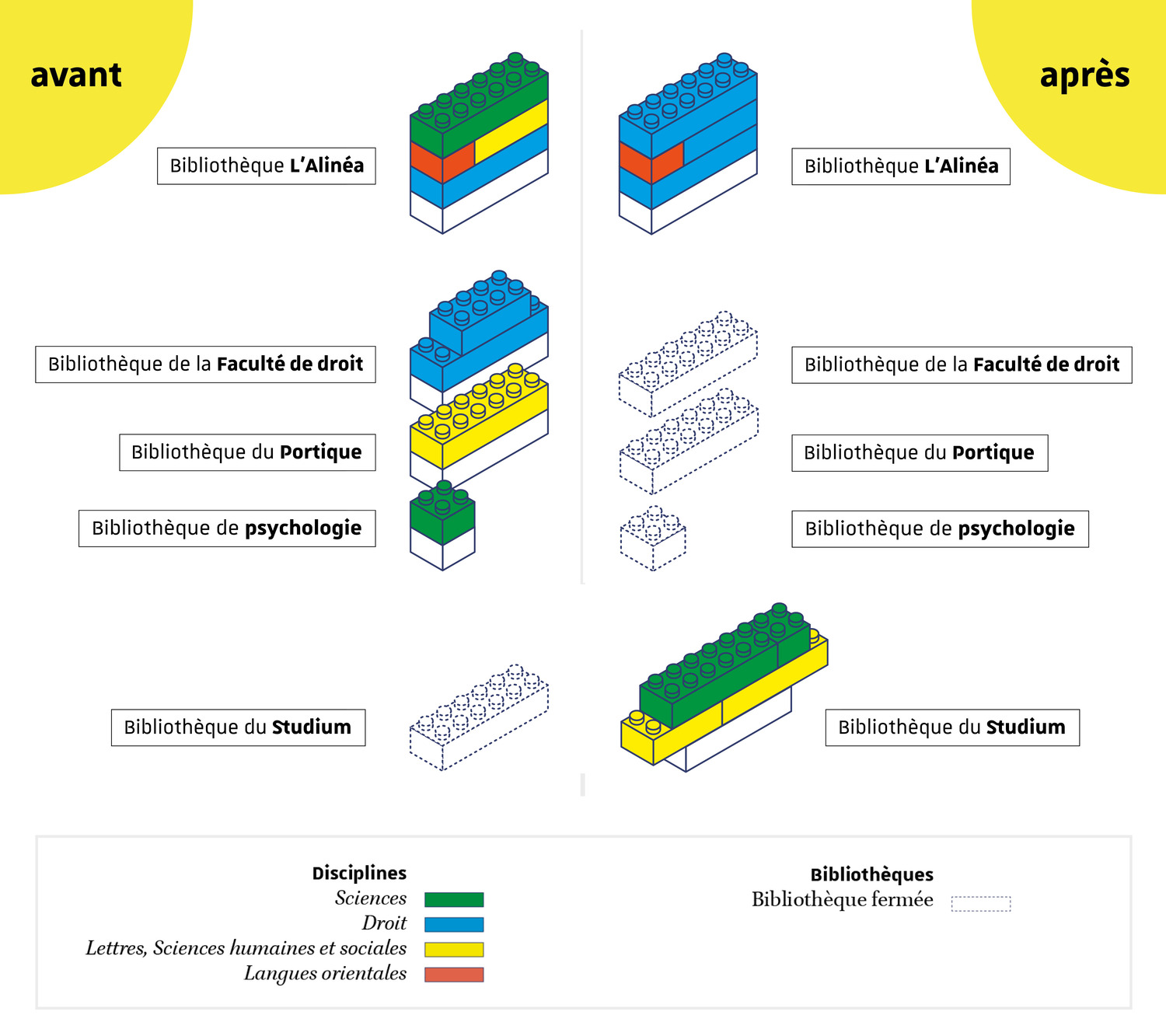 A l'issue des déménagements, les bibliothèques du Studium et de L'Alinéa