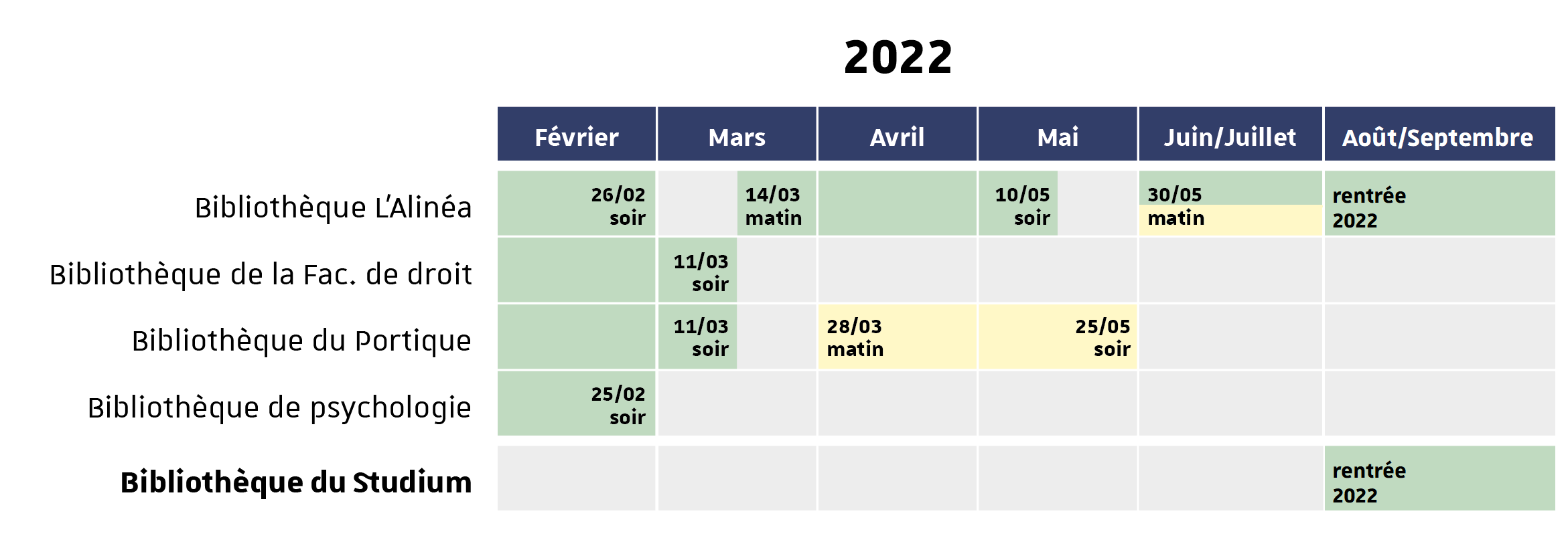 Au printemps 2022, les BU rassemblent des collections et repensent leurs espaces. Cliquez ici pour tout savoir sur les déménagements et pour accéder à nos services pendant les opérations.